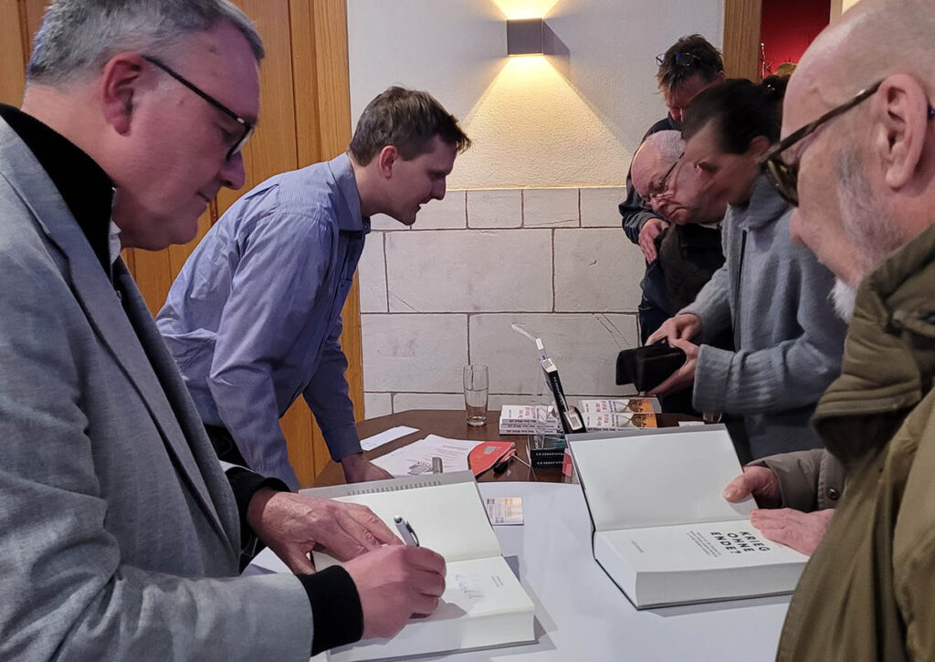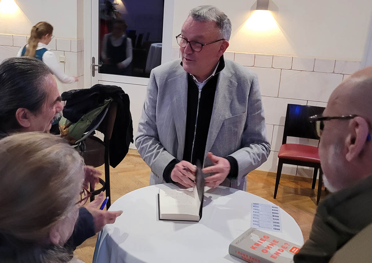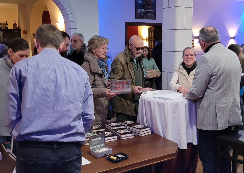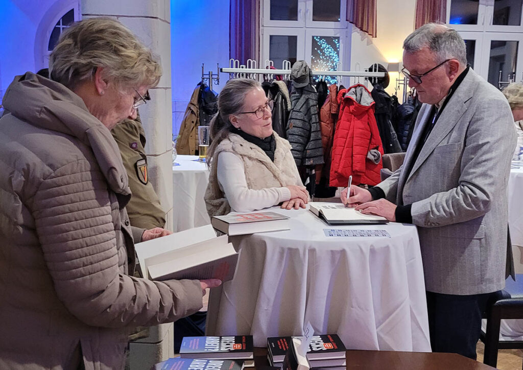 Begleitet wurde der Abend von einem Buchverkauf der Hutten-Buchhandlung Frankfurt (Oder). Zahlreiche Exemplare der Bücher von Michael Lüders wurden direkt vor Ort erworben – und im Anschluss vom Autor persönlich signiert.
