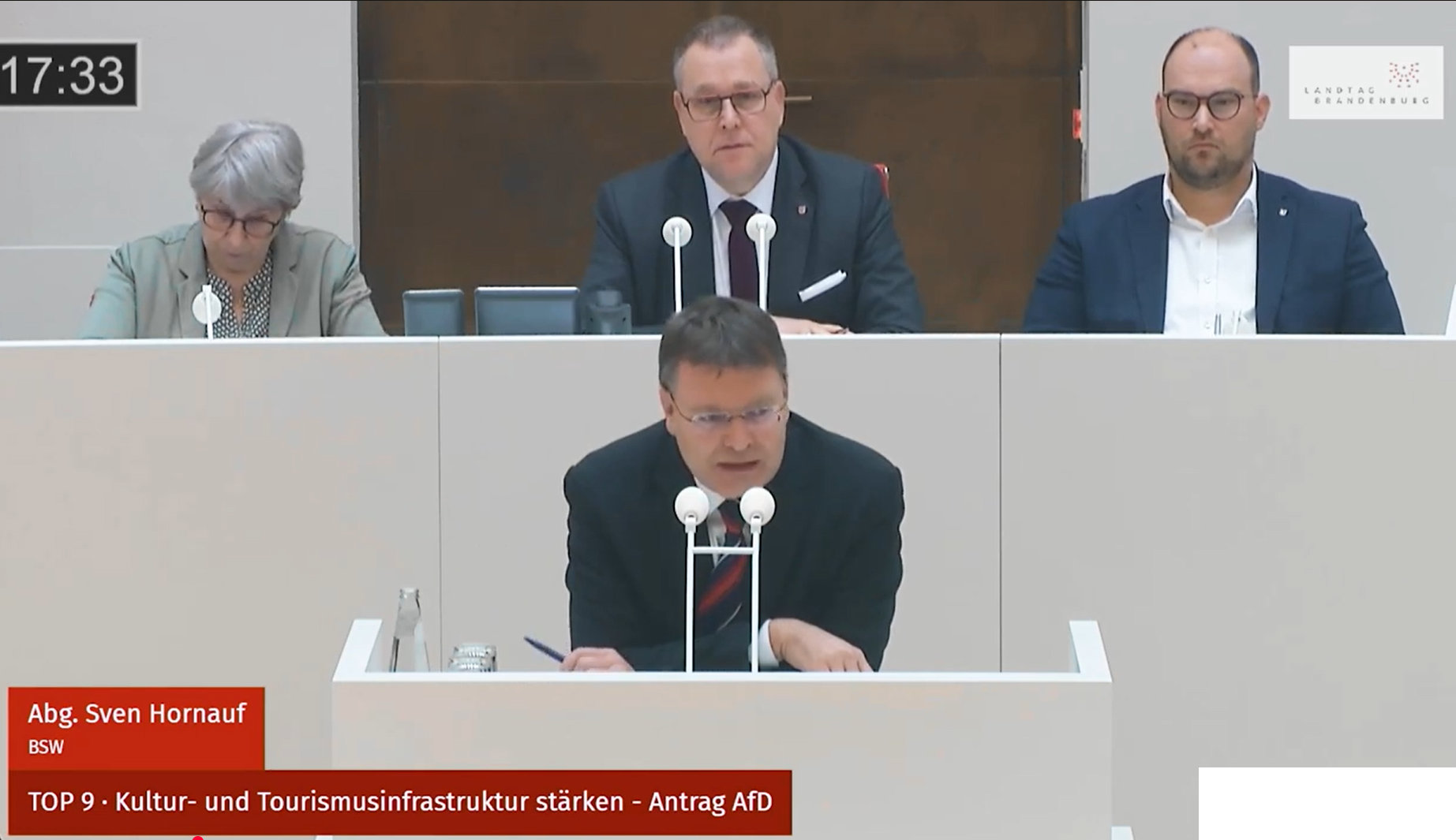 Und deswegen sagen wir als BSW: Der Ansatz müsste sein, nicht nur auf der einen Seite die Kommunen zu ermuntern und ordentlich auszustatten, Kultur als Pflichtaufgabe zu begreifen und auch zu finanzieren, sondern auch insgesamt in diesem Land die Finanzierung vom Kopf auf die Füße zu stellen und das Geld dafür auszugeben, was unsere Gesellschaft weiterbringt, nachhaltig weiterbringt, unter anderem für Kultur.