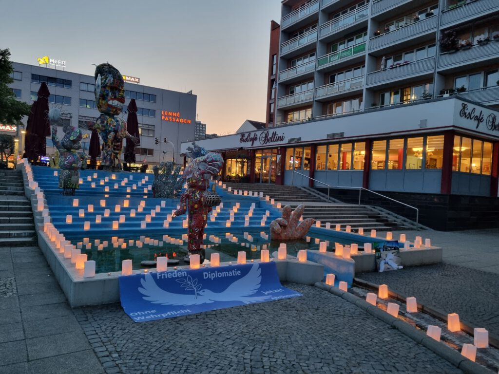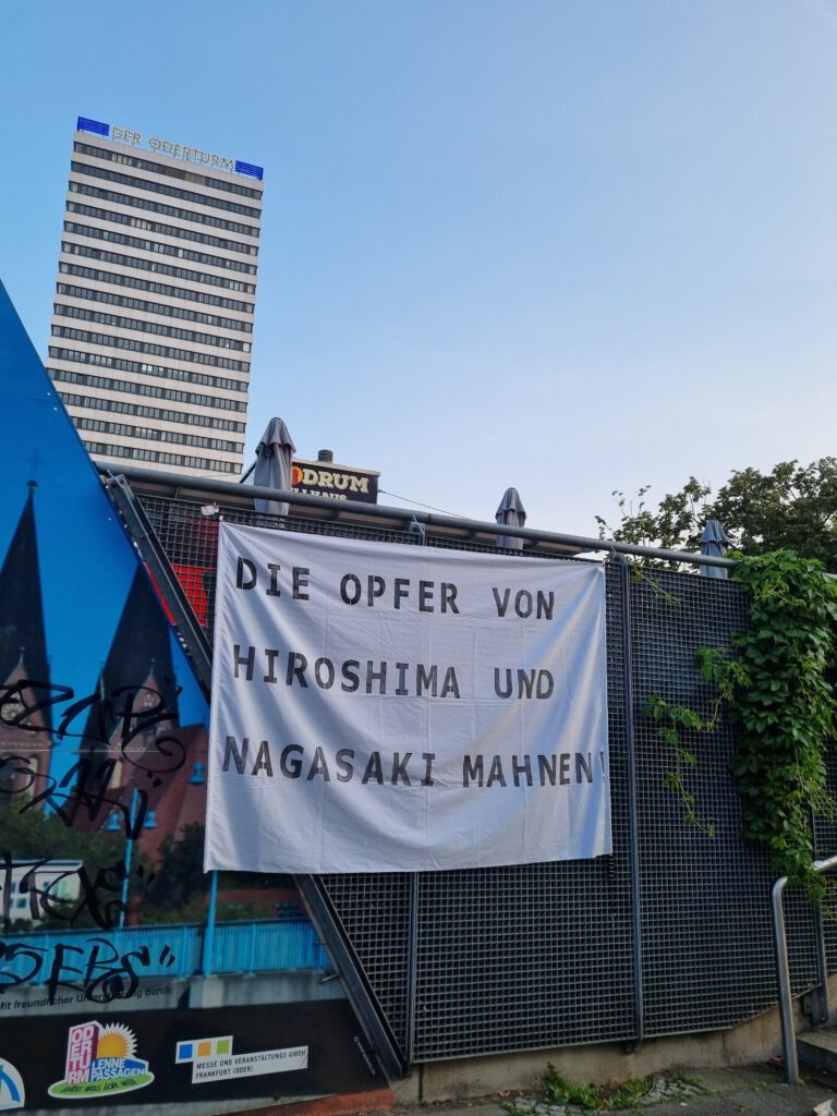 Am 6. August um 20 Uhr versammelten sich die Friedensfreunde Frankfurt (Oder) zu einer bewegenden Lichteraktion am Springbrunnen auf dem Brunnenplatz, um der Opfer der Atombombenabwürfe auf Hiroshima und Nagasaki vor 80 Jahren zu gedenken.